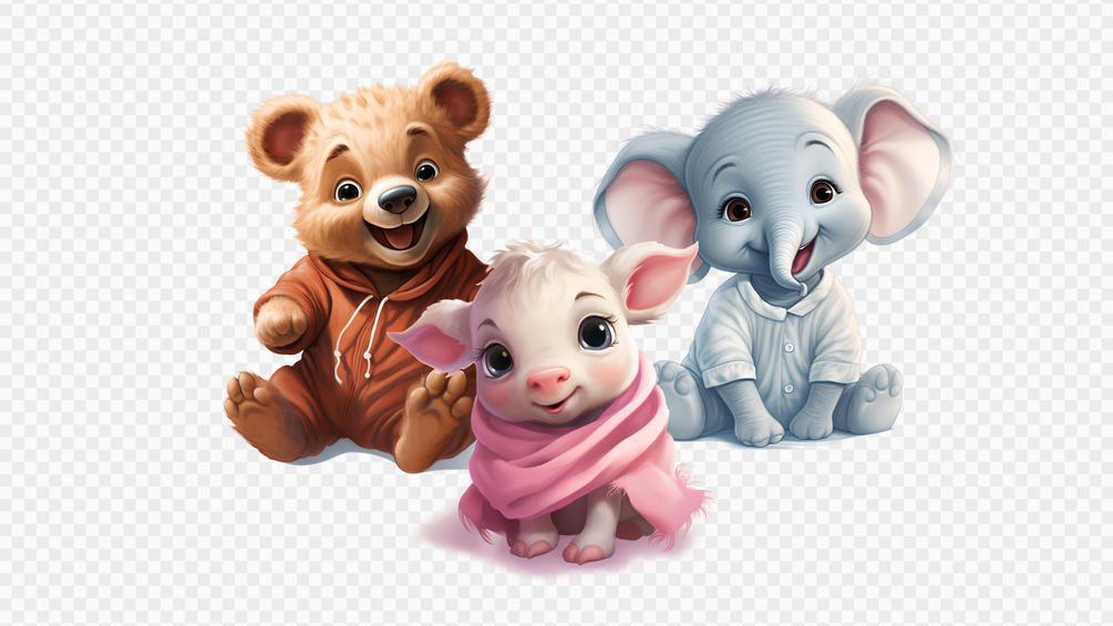 - Same 12 high-quality PNG files of baby animals illustrations without shadows